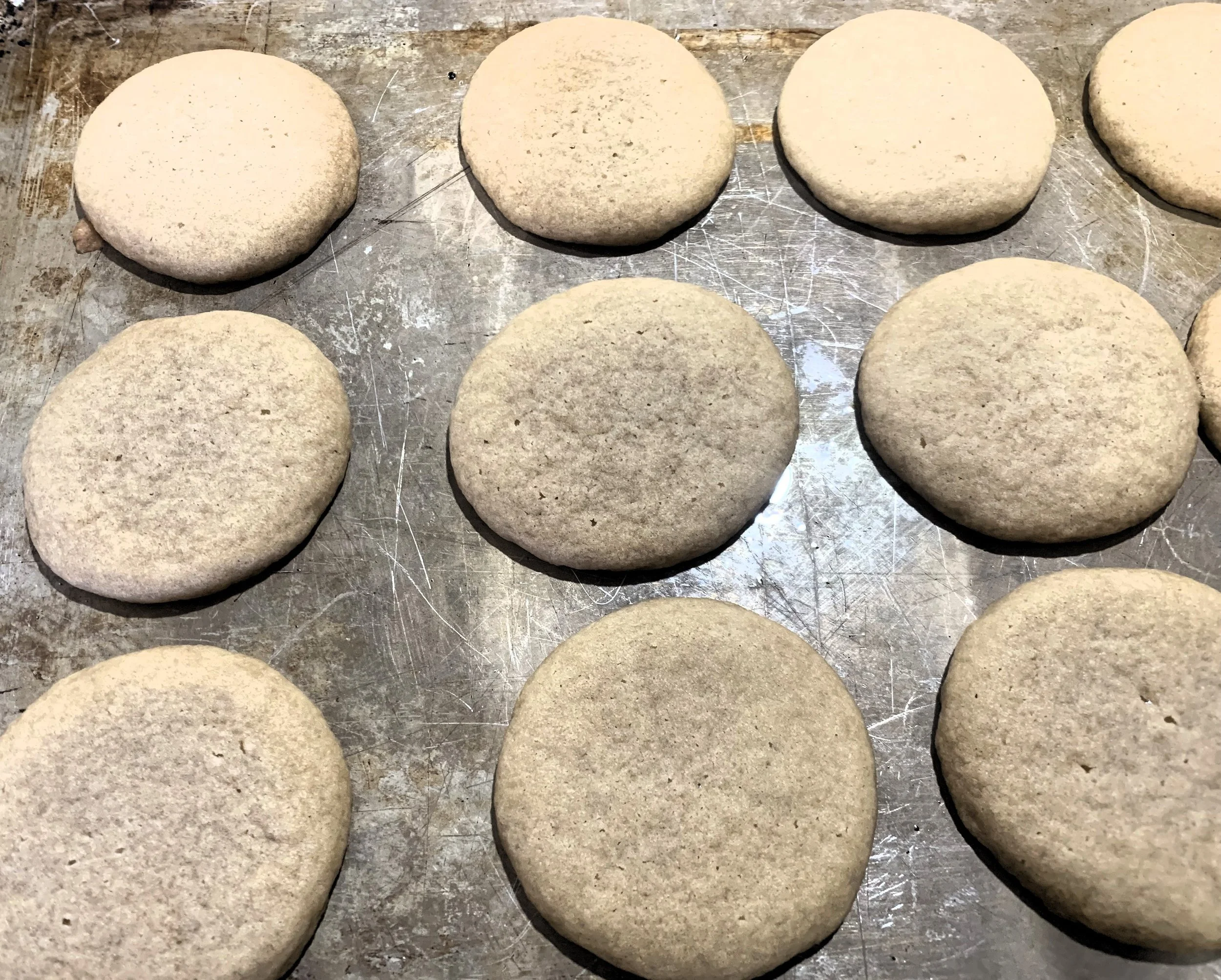 -Use a kitchen torch to caramelize the sugar on top of each cookie, then set aside to cool (or you can place the cookies on the cookie sheet on the top rack of the oven under the broiler until the tops have streaks of caramelized sugar on them. Watch closely as they can easily burn. Remove from under the broiler as soon as there are just a few marks of caramelization on each cookie. Set aside to cool.)