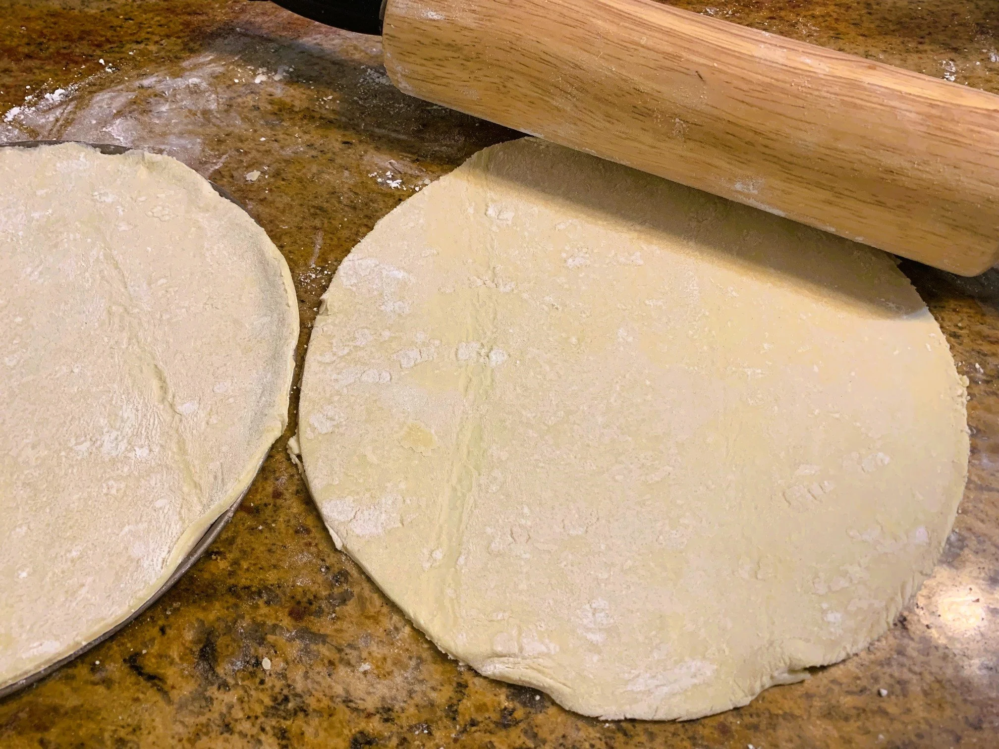 Roll the dough out as described in the recipe, then cut out 2, 10-inch circles.
