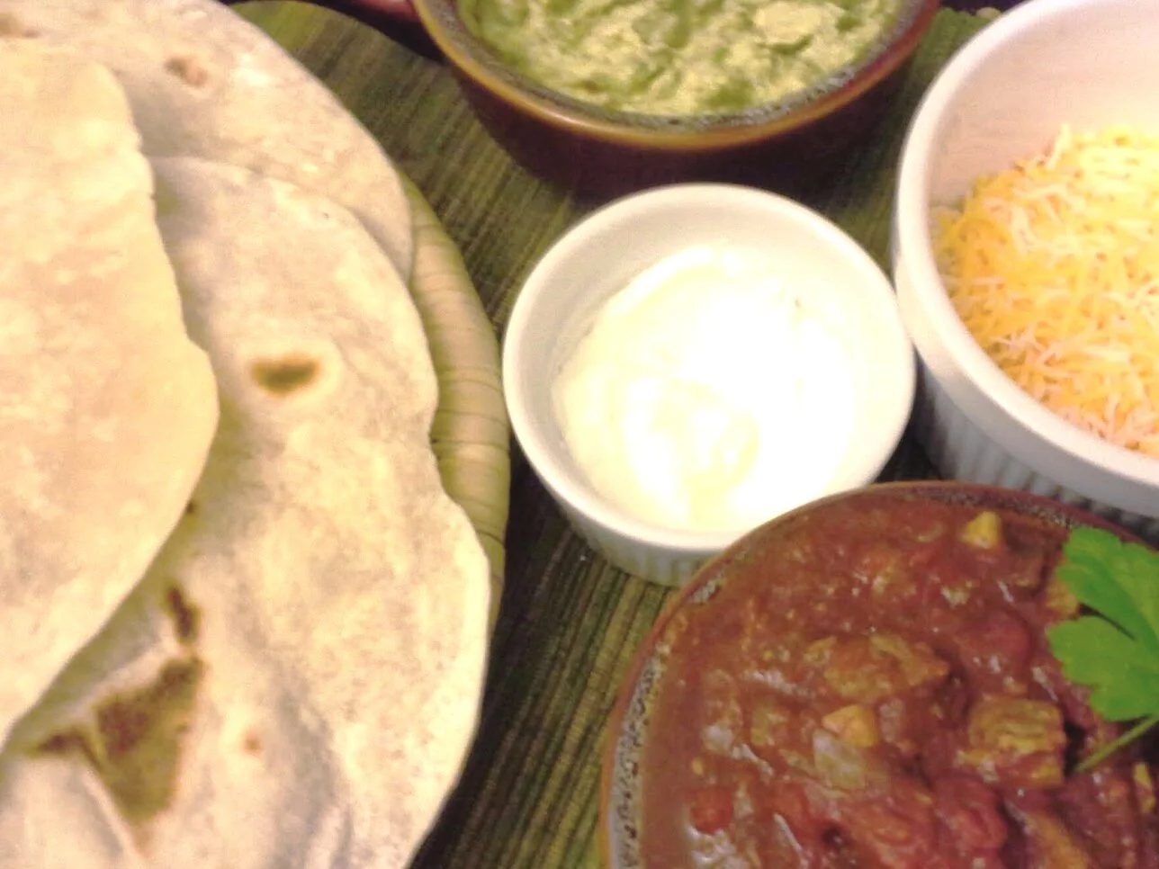 Flour tortillas served with chili beef and any Mexican toppings you can imagine!