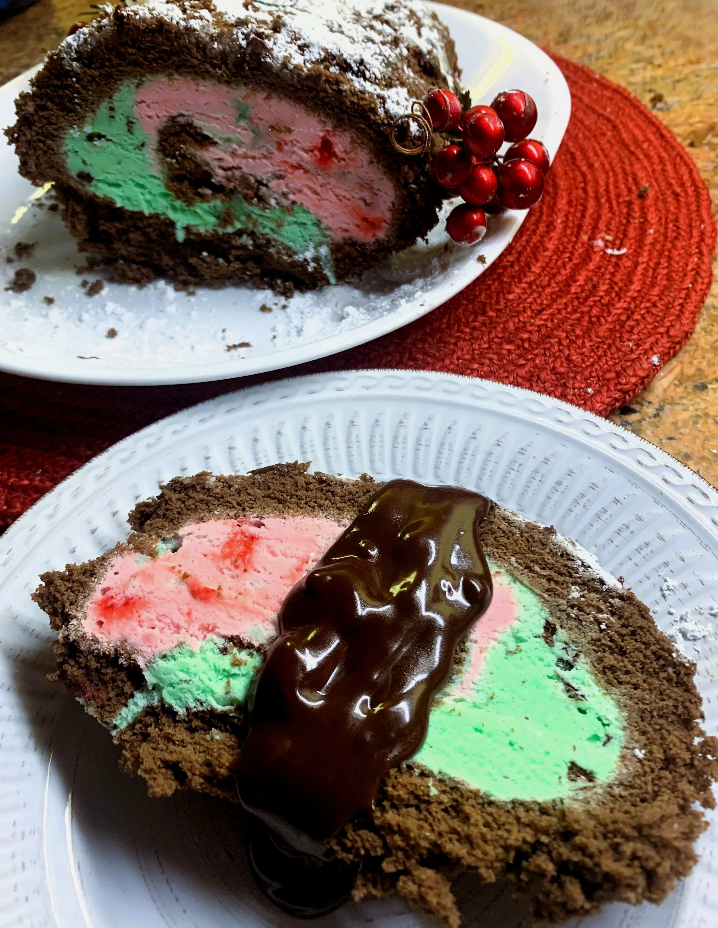 Peppermint Ice cream cake roll