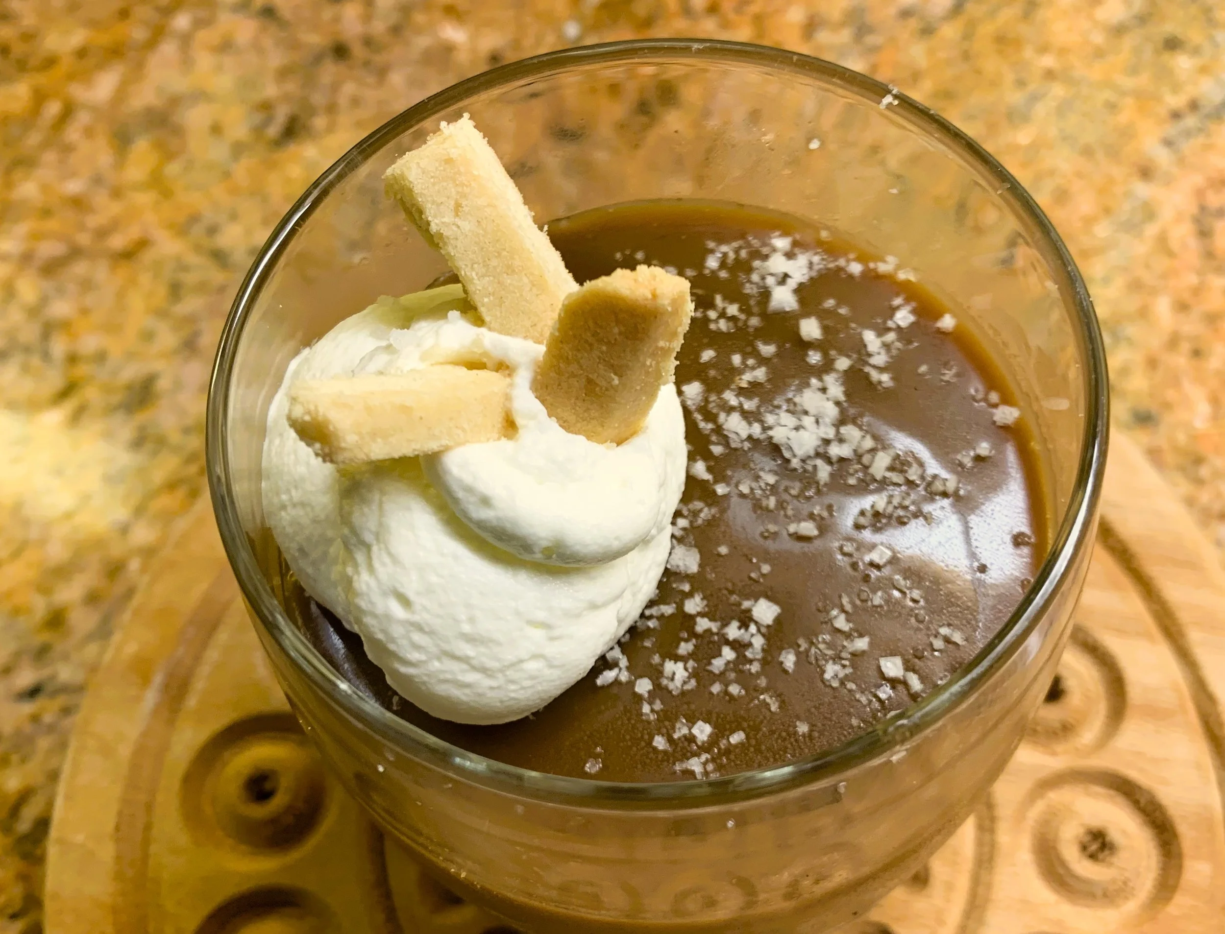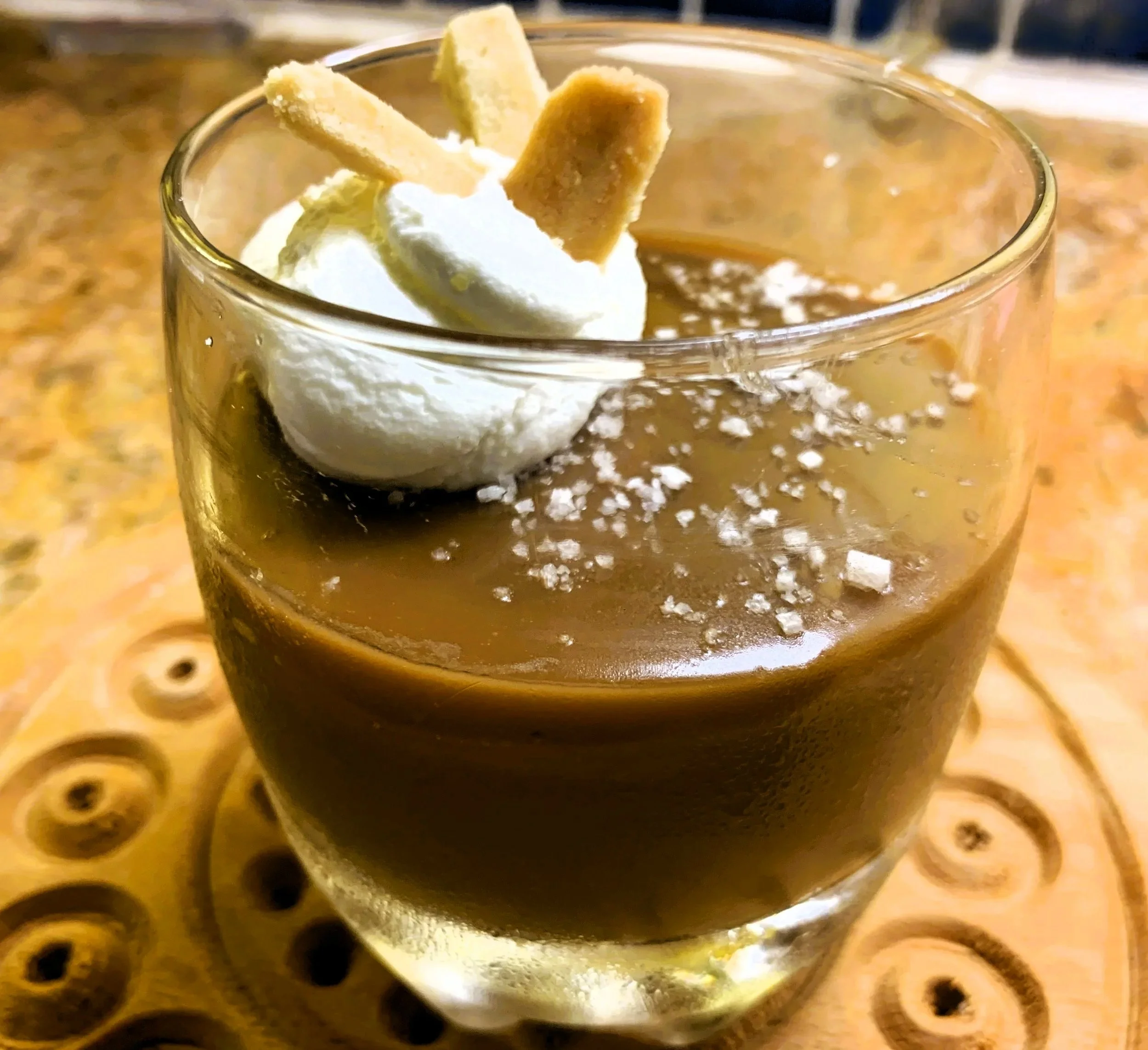 A layer of cookie crumbs followed by a layer of silky smooth caramel pudding, topped with rich, buttery caramel sauce, then garnished with flaky sea salt and sweet cream. What could be better?